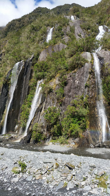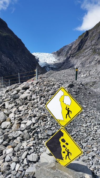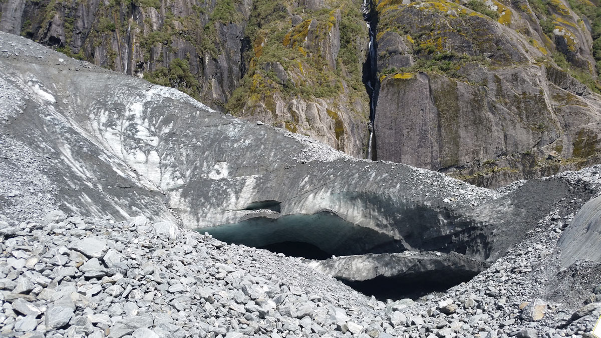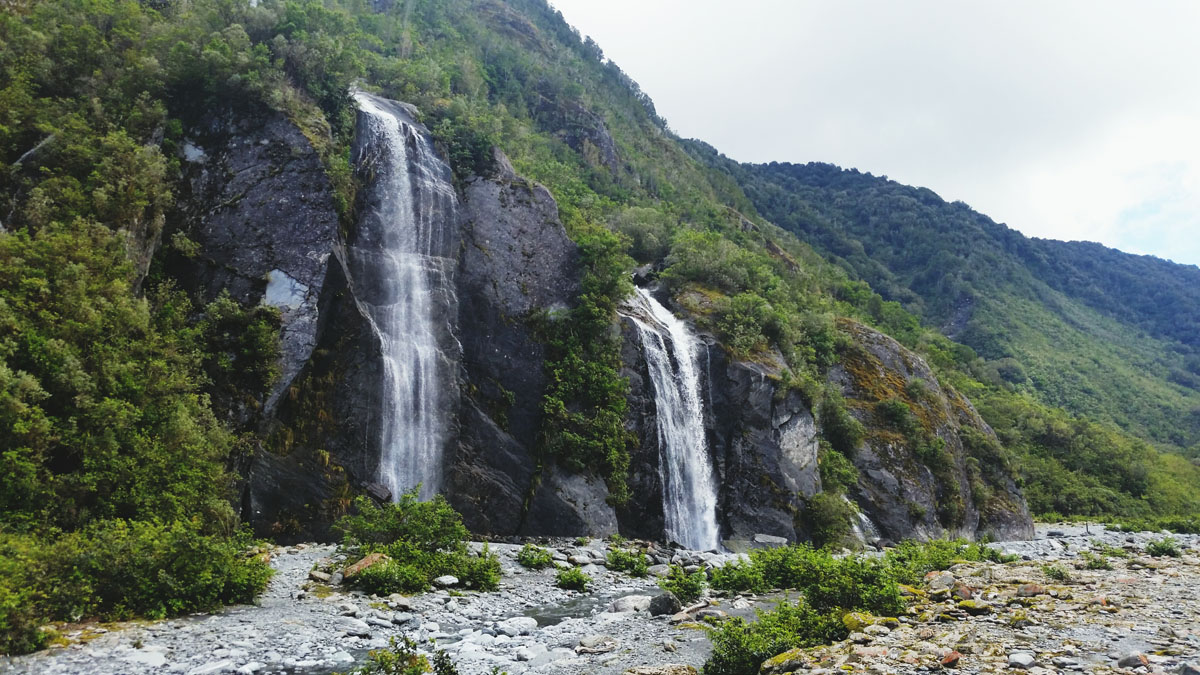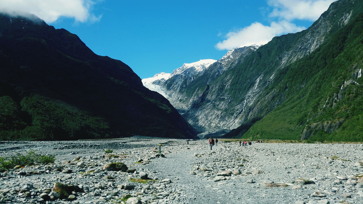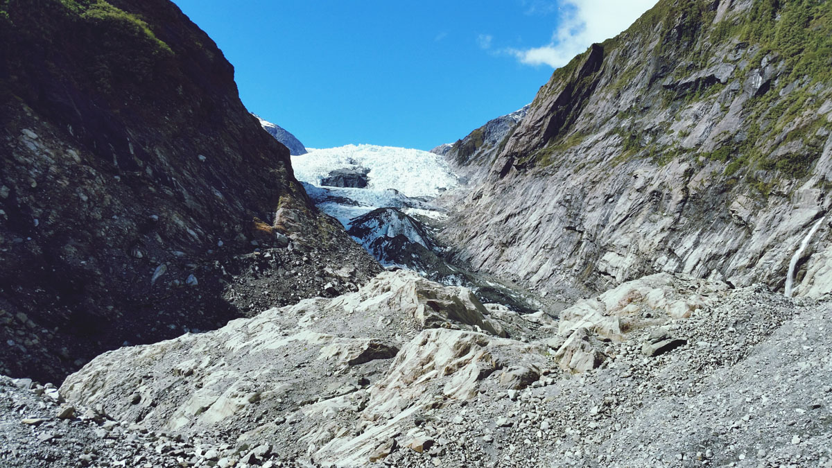 The Franz Josef Glacier sits on the west coast of the South Island. It is one of only three glaciers in the world that descend into a temperate rainforest.