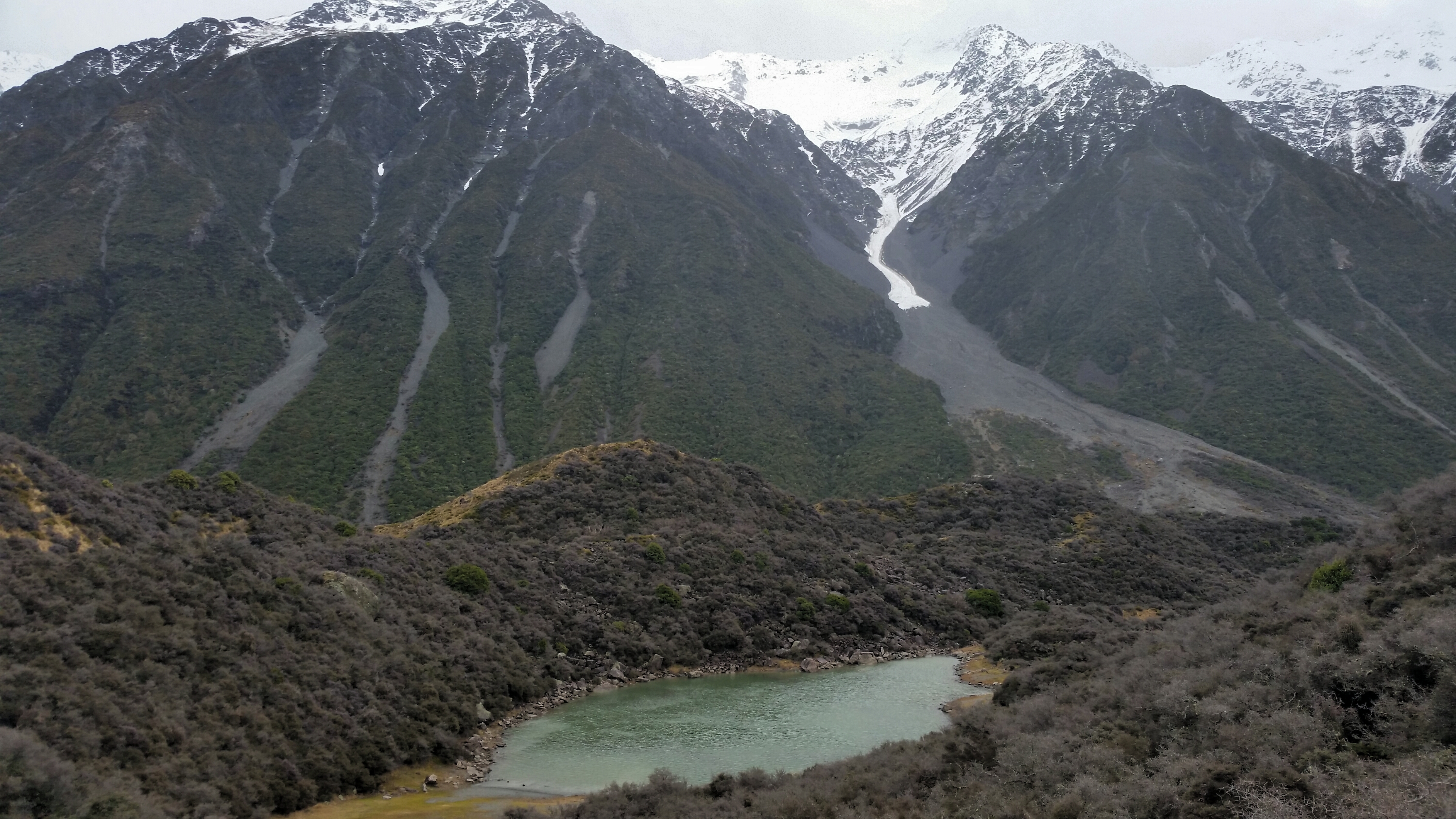 Tasman Lake – This lake is formed by melting ice and snow from the Tasman Glacier. The edge of the glacier can been seen at the back of the lake. During the peak of winter the lake is filled with giant icebergs of broken off glacier.