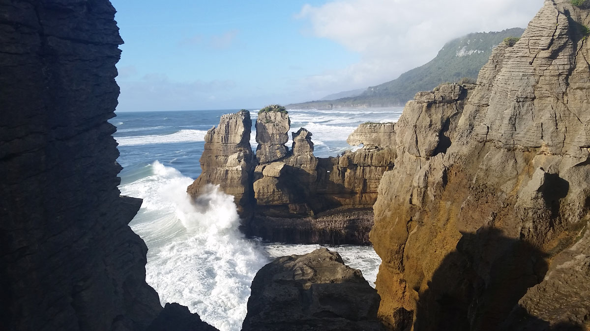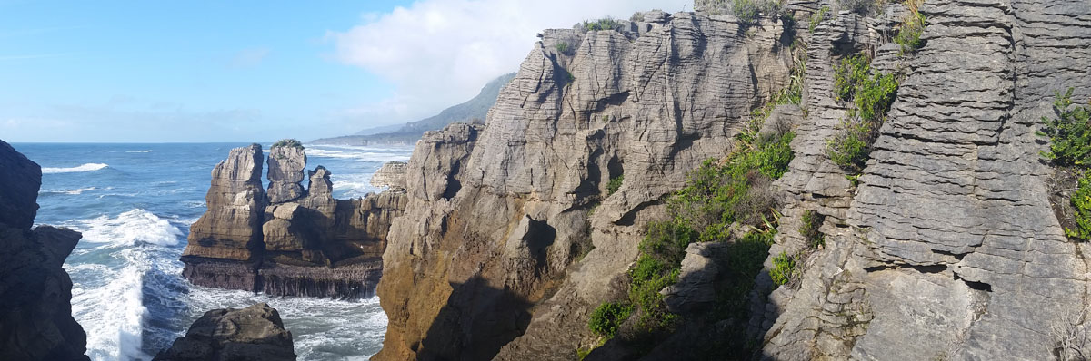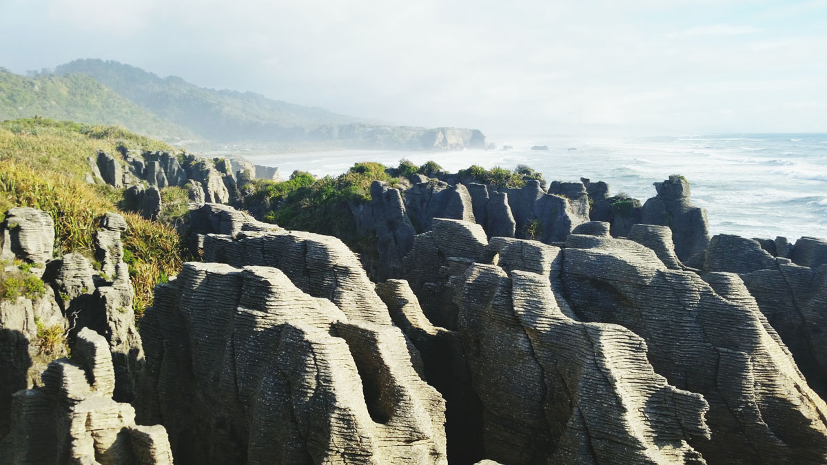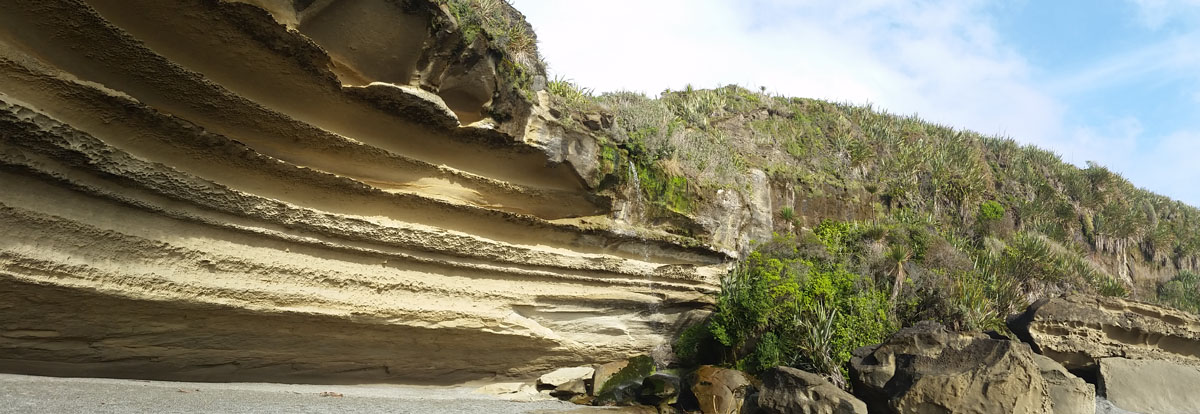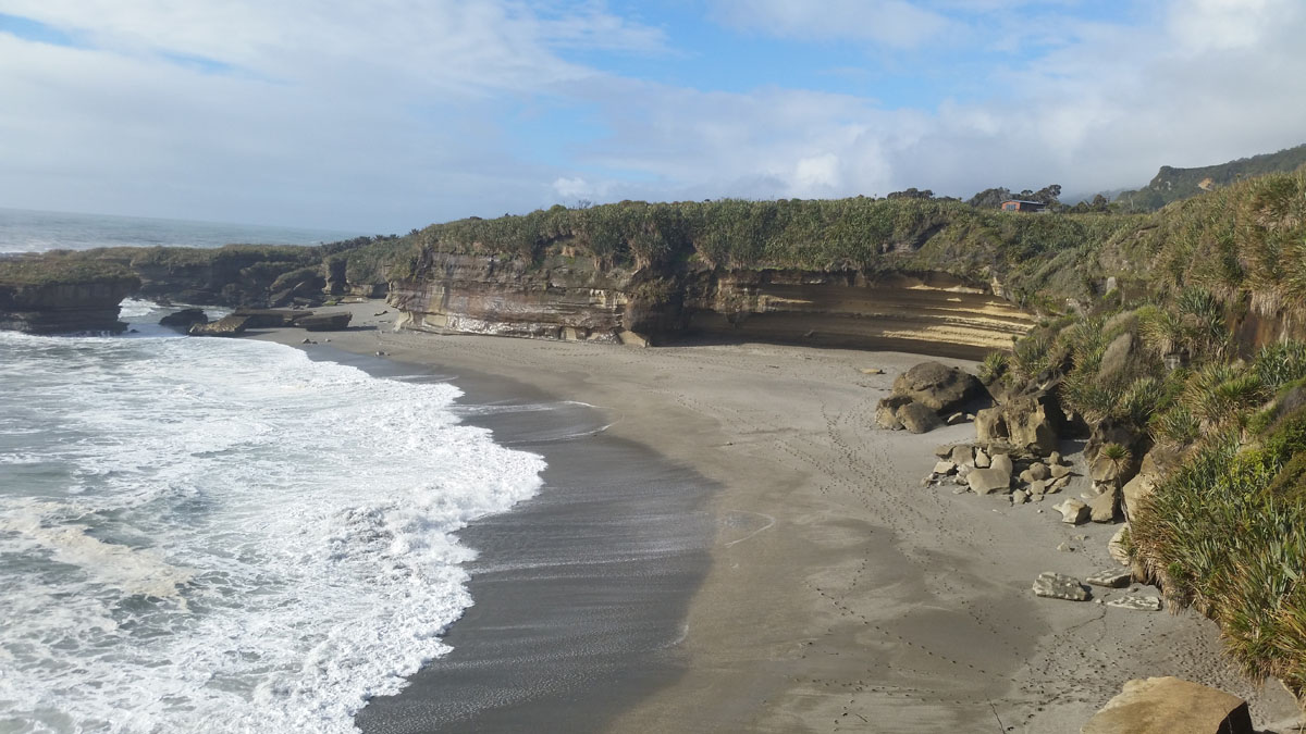 Pancake Rocks at Punakaiki November 12, 2014February 11, 2016 Jake On the way back north we stopped over in Punakaiki to check out the Pancake Rocks. These layered limestone rock formations have also been carved out into blowholes where seawater at high tide shoots up into the air. The “sand” on the beach. Share this:Click to share on Twitter (Opens in new window)Click to share on Facebook (Opens in new window) Related